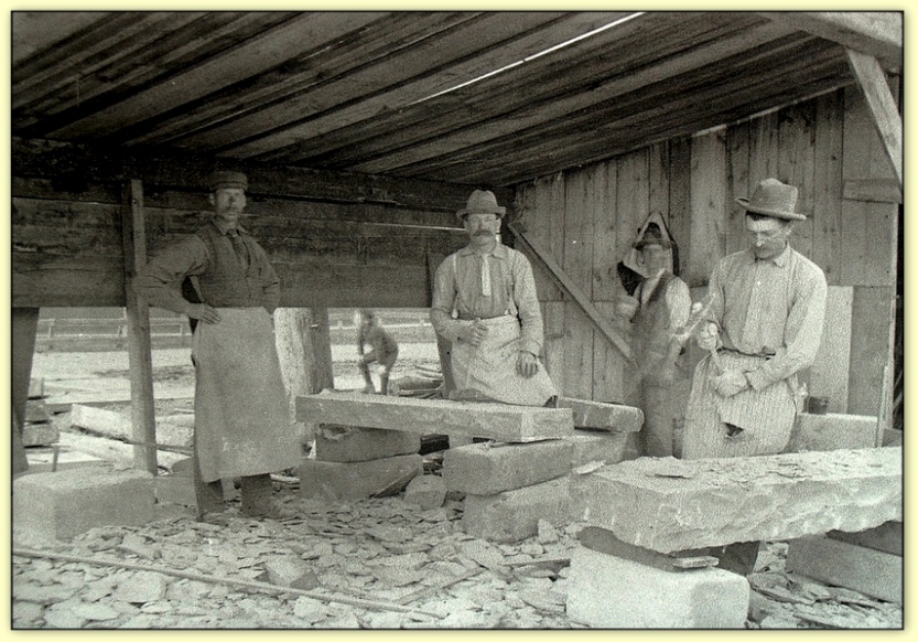 L'entreprise Pierry à Luzillé (Indre-et-Loire) Groupe de tailleurs de pierre