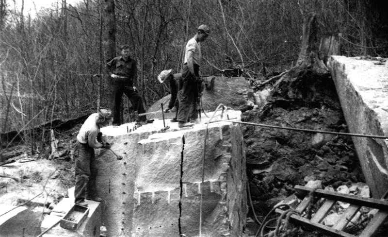 Carrière de grès de Saxon (Suisse) Familles de carriers à la pose apéritive...