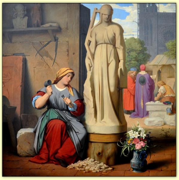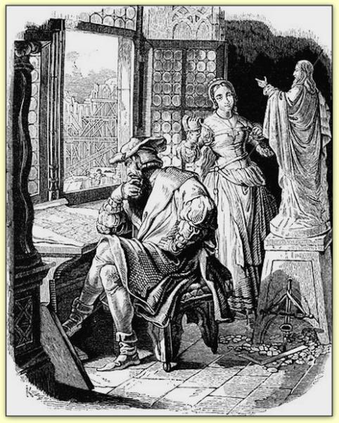 L'architecte Erwin von Steinbach avec sa soeur Sabina sculptant (1840) |  |
