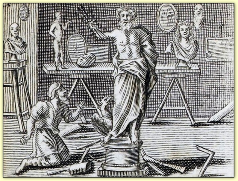 Le Statuaire et la statue de Jupiter par François Chauveau (vers 1670) Image illustrant la fable de La Fontaine
