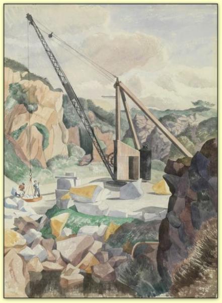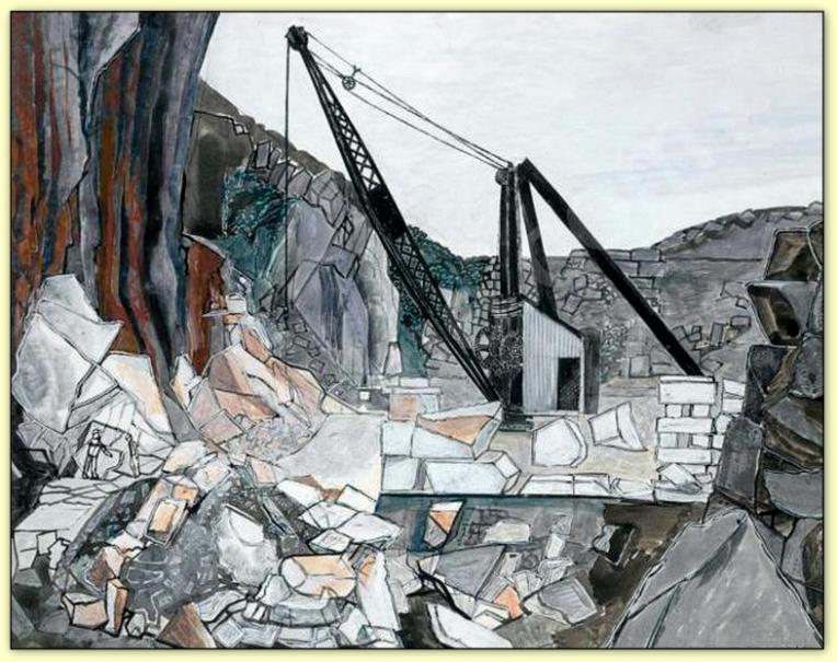 Carrière De Lank par Edward Bawden (1960) Carrière de granite du nord des Cornouailles (Royaume Uni) toujours en exploitation.