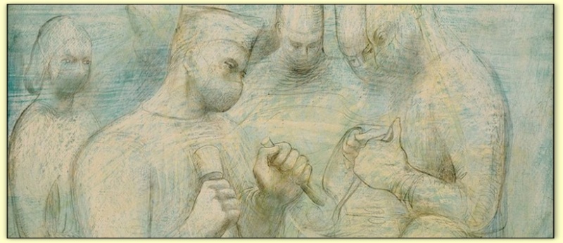 Groupe de chirurgiens par Barbara Hepworth Barbara Hepworth est une sculptrice britannique (1903/1975). Elle est une représentante majeure de la sculpture abstraite de la première partie du XXe siècle. Ici, avec ce dessin, l'accent est mis sur les outils que les chirurgiens utilisent, parfois semblables à ceux utilisés par les sculpteurs. Barbara Hepworth identifie l'art du sculpteur à celui des chirurgiens.
