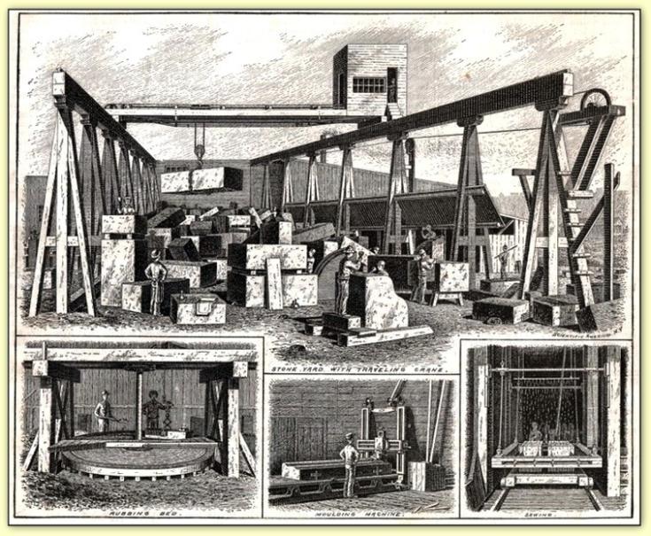 Vue d'une usine de transformation de la pierre (USA) (1892)