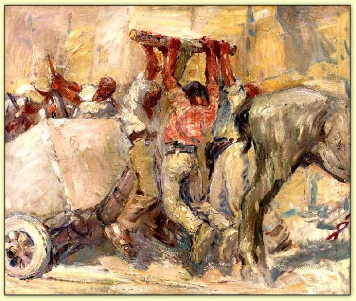 Un chariot trop chargé (Steinauflader am kippwagen) par Robert Hermann Sterl Robert Hermann Sterl (1867/1932) est un peintre allemand fils d'un tailleur de pierre...