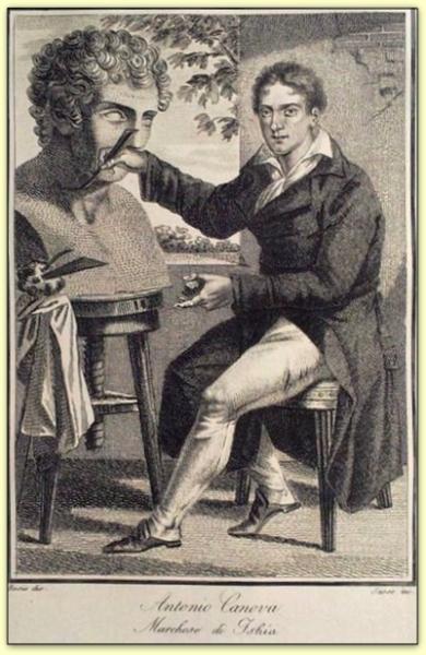 Antonio Canova Sculpteur italien, de Possagno - Province de Trévise (1757/1822) Né dans une famille de tailleurs de pierres depuis des générations, il apprit très jeune la taille du marbre. En 1768, il est placé comme apprenti chez le sculpteur Giuseppe Bernardi Torretti, à Pagnano d'Asolo (province de Trévise), puis intègrera plus tard l'école Santa Marina à Venise. Persée tenant la tête de Méduse - Psyché ranimée par le baiser de l'Amour - Les trois grâces