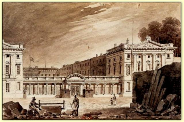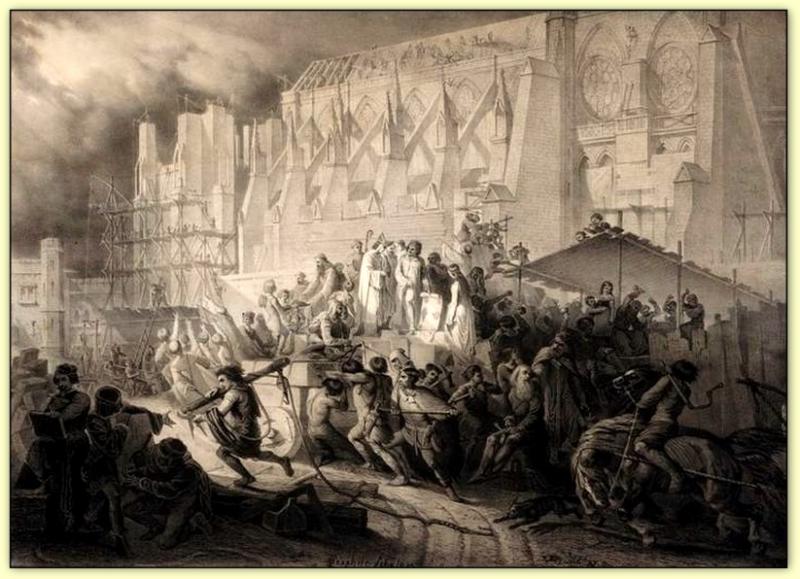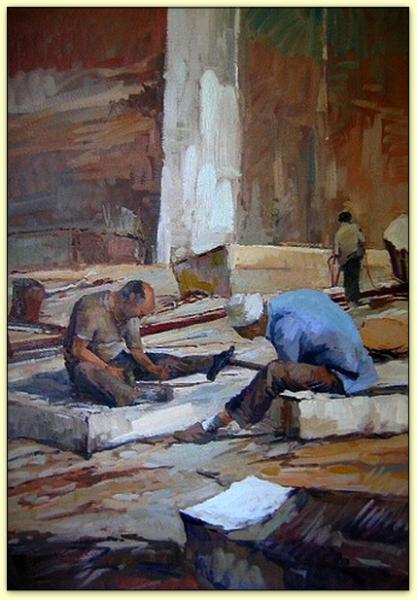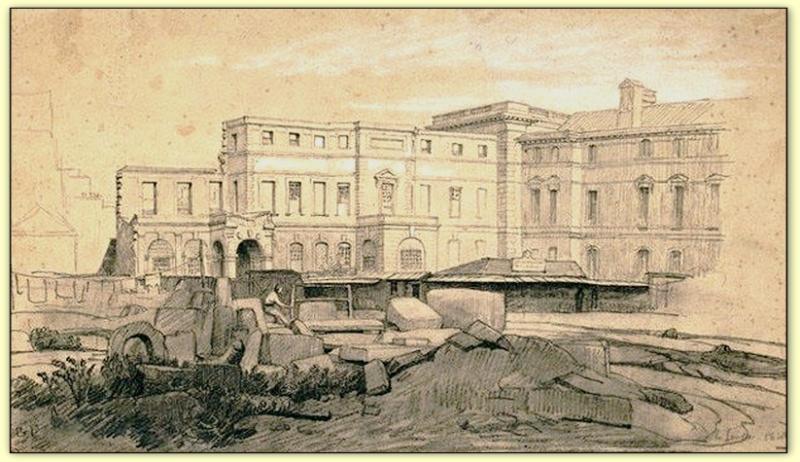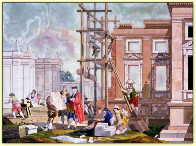 Chantier avec tailleurs de pierre aux abords du Louvre