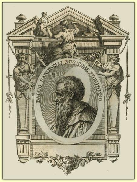 Baccio Bandinelli ou Bartolomeo Bandinelli ou Bandelli ou Bartolomeo Brandini Sculpteur et peintre italien, de Florence (1493/1560) Il fut membre de l'école de Rustici où il connut Léonard de Vinci. Attiré par la sculpture monumentale et les effets grandioses, Baccio Bandinelli cherche à rivaliser avec l'art de Michel-Ange, mais sans jamais pouvoir le rivaliser. il lui vouera alors une haine éternelle.