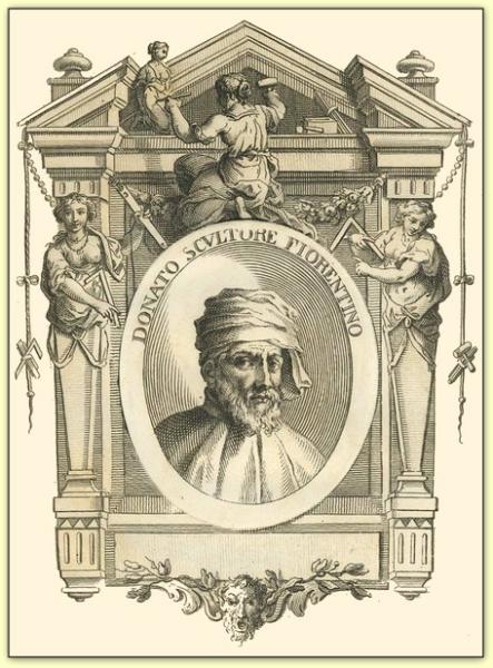 Donato di Niccolò di Betto Bardi, dit Donatello Sculpteur italien, de Florence (1386/1466) Le sculpteur le plus novateur et le plus influent de son temps. Formé par un maître d'une sensibilité encore médiévale, il apporte un souffle nouveau et obtient de nombreuses commandes pour les églises de Florence. Sa renommée dépasse bientôt les murs de sa ville natale : il est appelé à travailler dans toute la Toscane et jusqu'en Vénétie, contribuant ainsi à la diffusion des nouvelles formes florentines. Il excelle dans tous les formats, dans tous les matériaux et dans tous les sujets, profanes ou religieux. Son habileté dans la représentation des expressions, de la douceur d'une mère à la détermination farouche d'un guerrier, distingue ses sculptures entre toutes.