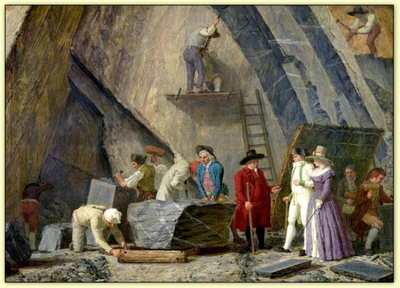 Le fond de l'ardoisère de la Gravette (Maine-et-Loire) Viollet le Duc (1833)
