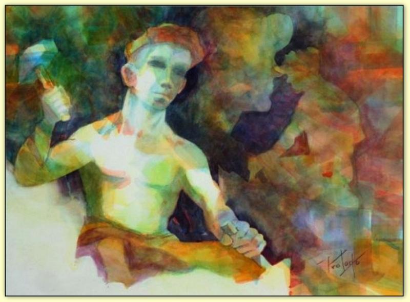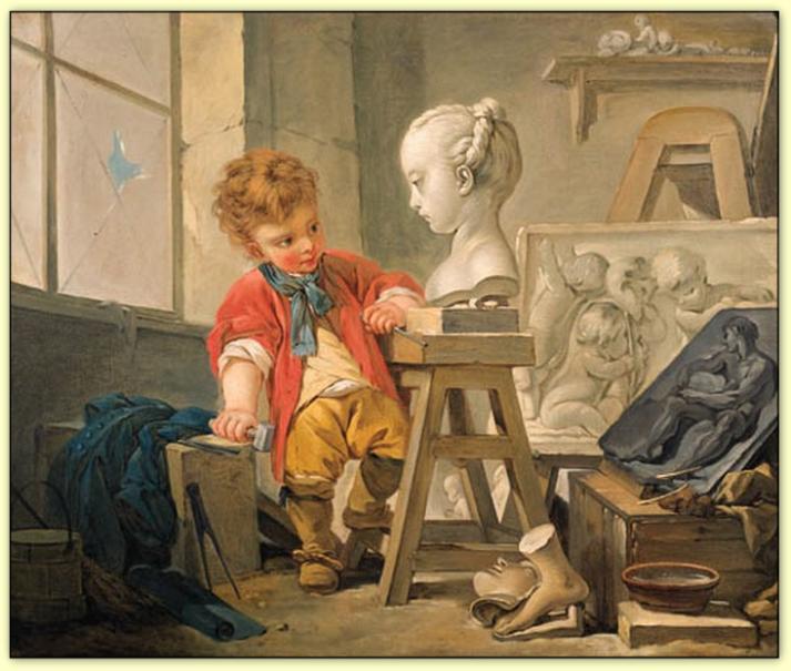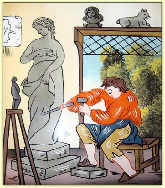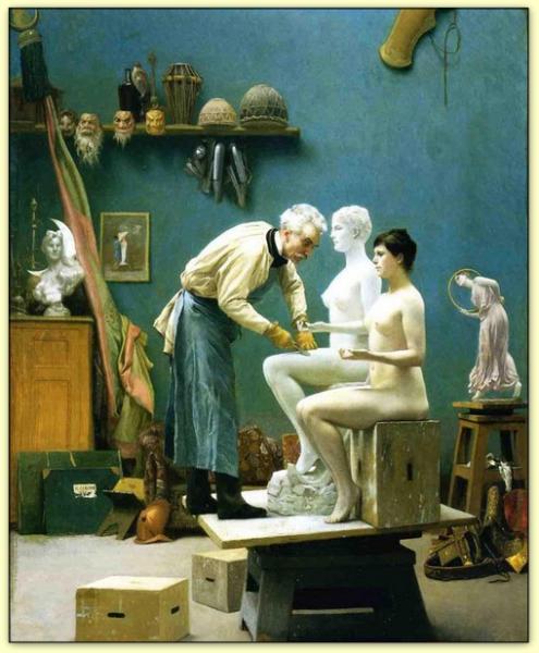 Jean-Léon Gérôme - Le travail du marbre (1891) Jean-Léon Gérôme (1824-1904) est un peintre et sculpteur français, membre de l'Académie des beaux-arts. Il arrive tardivement à la sculpture à l'Exposition universelle de 1878 avec "Les Gladiateurs". En France, il devient le symbole de l'académisme. Il s'est souvent représenté dans ses propres tableaux en train de sculpter.
