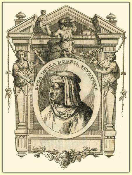 Luca della Robbia (Luca di Simone di Marco della Robbia) Sculpteur et céramiste italien, de Florence (1400/1481) C'est le célèbre auteur de la deuxième tribune, Cantoria (un balcon d'orgue où plusieurs chanteurs pouvaient se réunir) de la cathédrale Santa Maria del Fiore de Florence. Il est aussi le fondateur d'un célèbre atelier de céramistes (Atelier des Della Robbia).