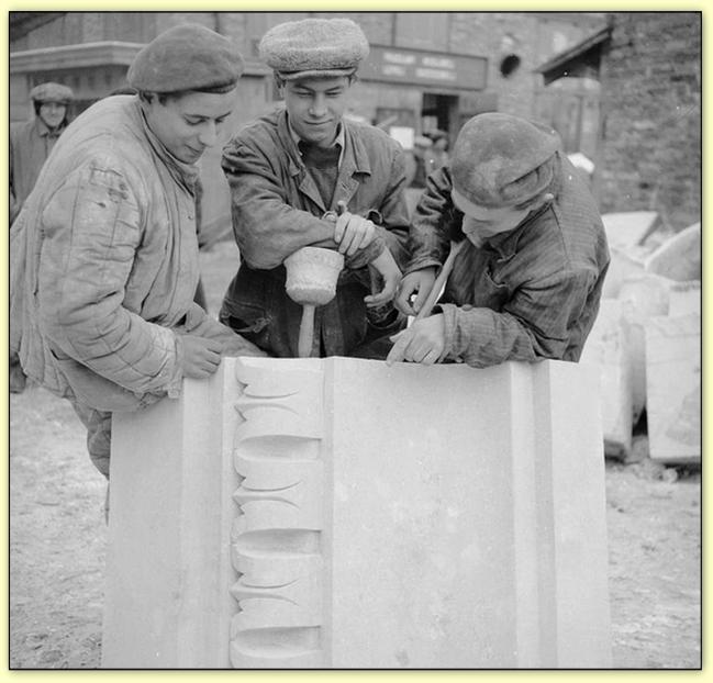 L'entreprise Pierry à Luzillé (Indre-et-Loire) Groupe de tailleurs de pierre