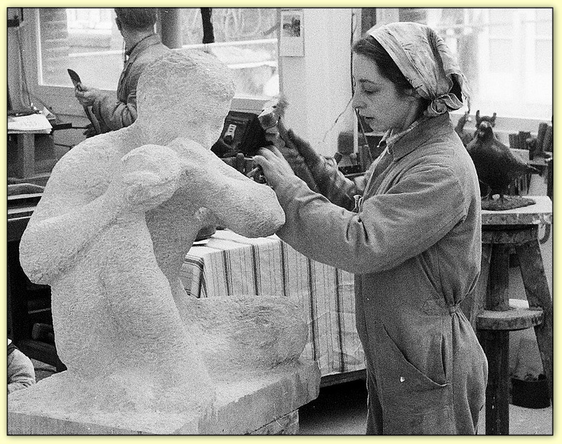 La sculptrice Ola-Cohn Carola Cohn - dite Ola Cohn (1892 -1964) est une sculptrice australienne de style moderne. Elle se forme au Royal College of Art de Londres sous la direction d'Ernest Cole et Henry Moore. On la voit ici sculptant "Mother Earth" en 1926 (image de gauche) et la statue du Pioneer Women's Memorial Garden à Adelaide en 1940 (image de droite).