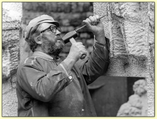 Sculpteur rénovant la cathédrale de Munster (1942)