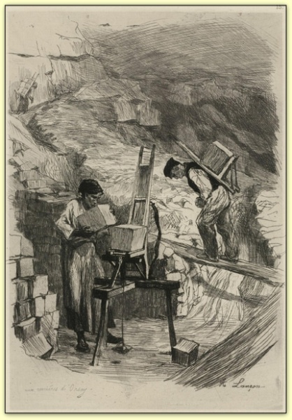 Carrier à la barre d'enfiche dans la carrière des Lourdines (Migné-Auxances dans le Poitou) Par Gaston Cantin (1881/1967)