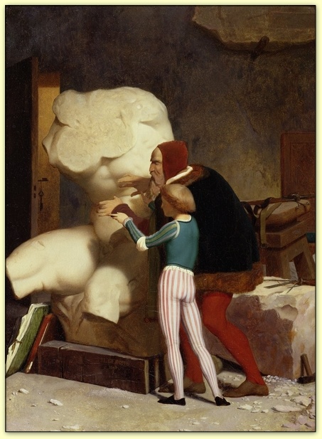 Michel-Ange sculptant dans son atelier Par Cornelius |  |