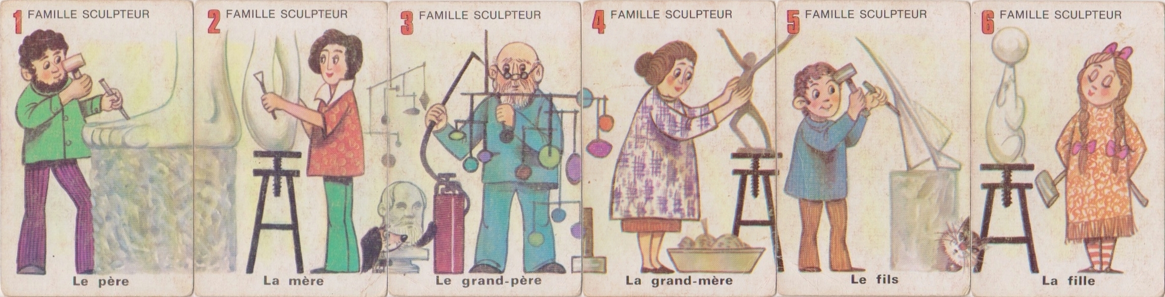 Jeu de sept familles Famille Sculpteur - La Mère Clic pour voir la famille au complet