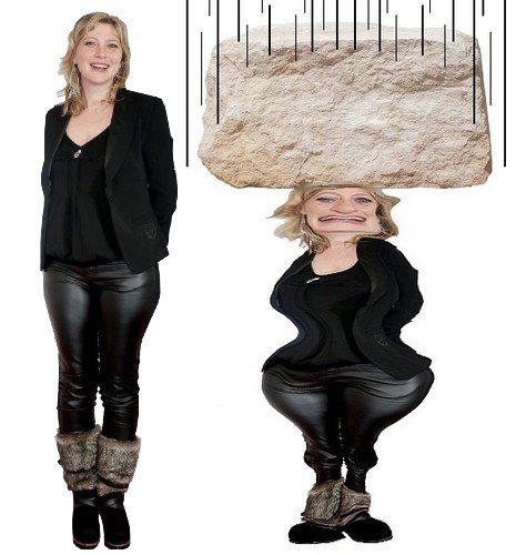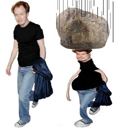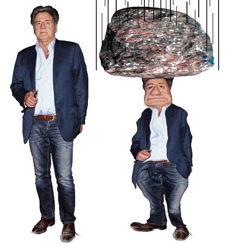 Notre célébrité n'a pas vu venir le bloc qui s'est malencontreusement détaché du front de taille... ! | |