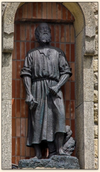 Statue en hommage aux tailleurs de pierre du chemin de Saint-Jacques -de-Compostelle