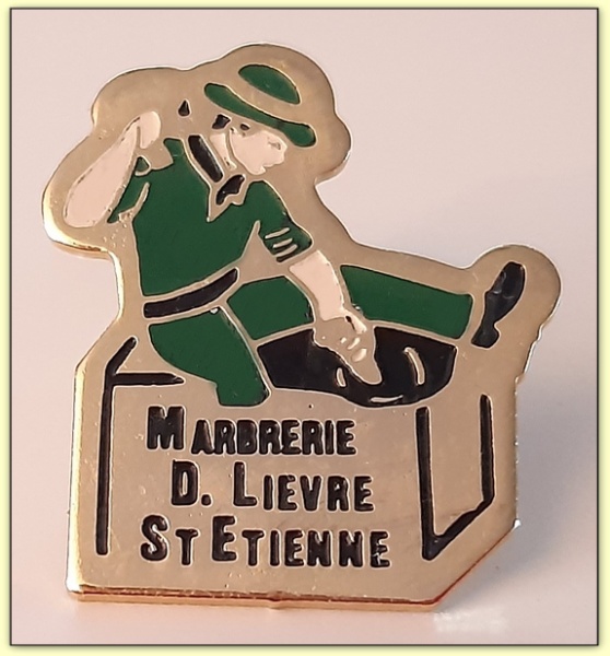 Pin's de l'Association nationale des tailleurs de pierre allemand (Landesverband der Steinmetz) De gauche à droite : Maillet - Compas d'épaisseur - Peigne à grès Le sigle central est celui de l'Association et fait référence aux "marques" personnalisées que les tailleurs de pierre gravaient dans la pierre.