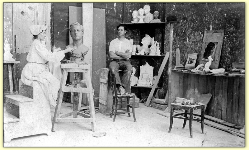 Lola Mora sculptant "La Fontaine des Néréides" à Buenos Aires