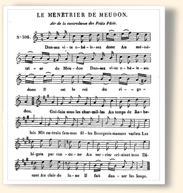 | | Poète, mais pas du tout compositeur, Poncy place ces textes sur la musique d'autres chansons de son époque. Ainsi, la Chanson du Tailleur de Pierres se joue sur l'air du "Ménétrier de Meudon" de Pierre-Jean de Béranger, un chansonnier du 17èm siècle (voir la partition ci-dessous).