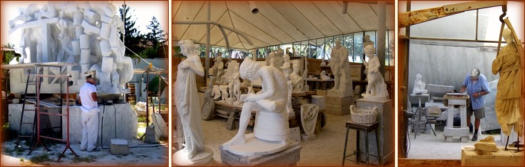Il me parle de son atelier ou il accueille de nombreux apprentis sculpteurs arrivant des 4 coins du monde et de ses affaires qui paraissent florissantes... En un mot, pour lui, le marbre d'ici est la plus belle matière qui existe et l'artiste italien un sculpteur sans égal sur cette terre... |