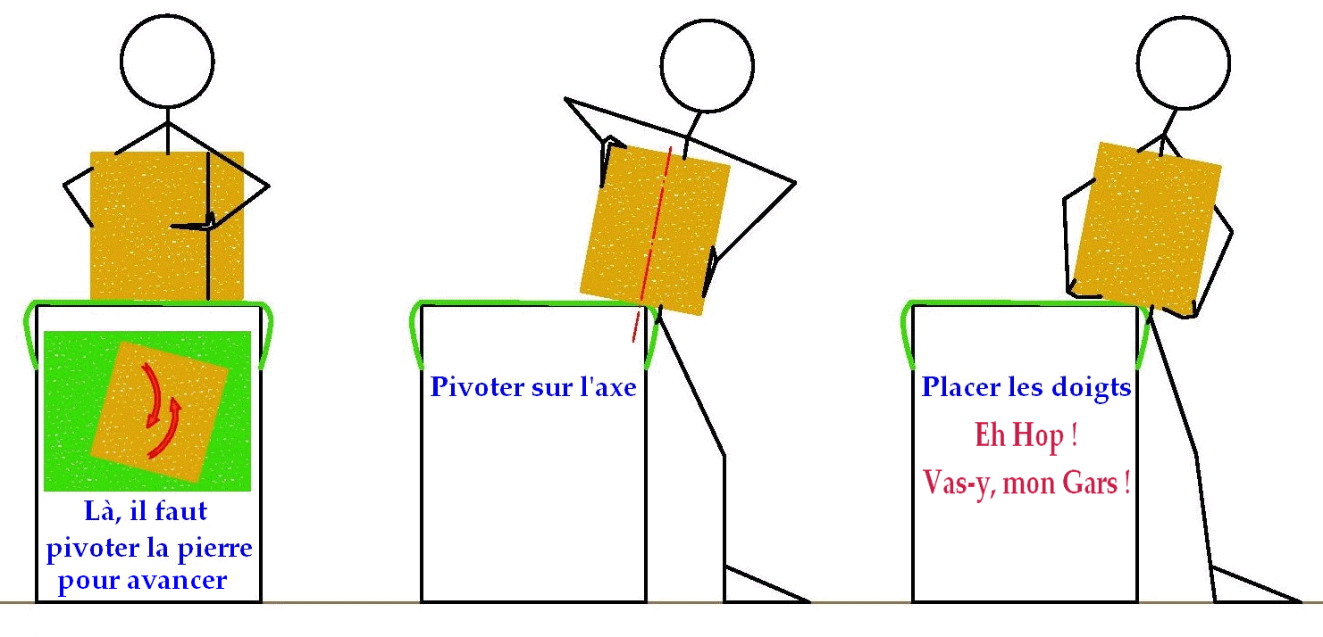Alors, comme il fallait bien lever les blocs et les basculer à la main, nous étions devenu de vrais pros du levage manuel et, très rapidement, l'utilisation du chariot était devenu presque exceptionnelle.