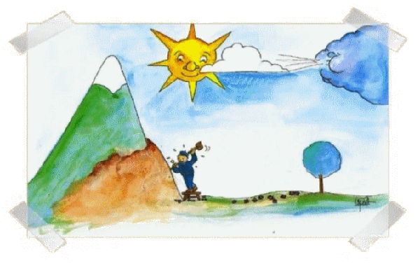 "J'en ai assez de cette vie !... Tailler, tailler la pierre, c'est éreintant... Et ce soleil, toujours ce soleil !... Ah !... Comme j'aimerais être à sa place, je serais là-haut tout puissant, tout chaud en train d'inonder le monde de mes rayons..." se dit le tailleur de pierre.