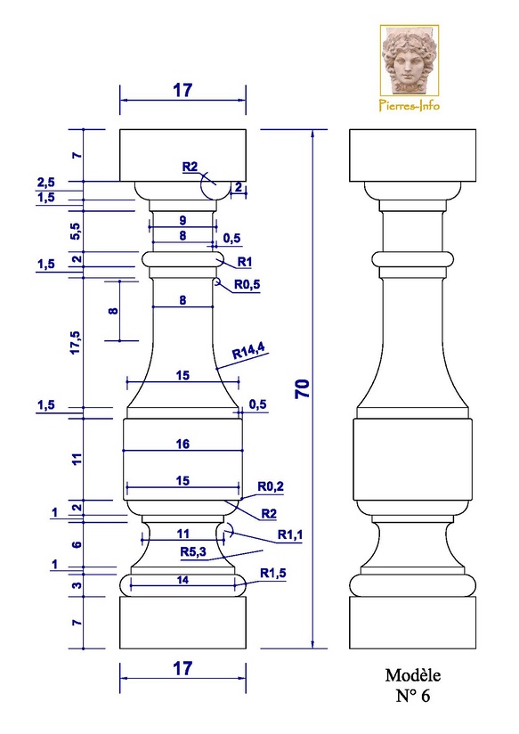 La cote entre chaque balustre et entre une base de balustre et un dé : 4,5 centimètres