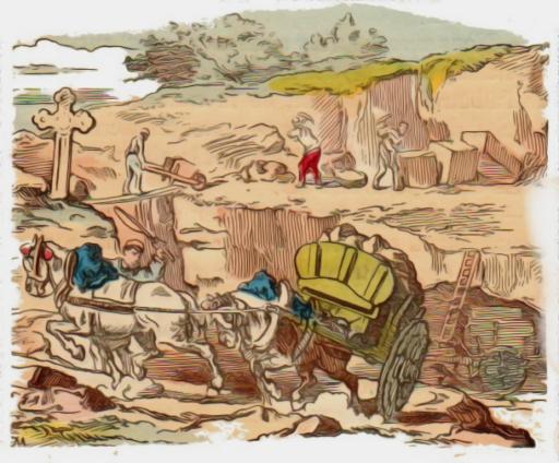|  La bonne pierre à bâtir se trouve généralement dans le sol. Elle gît en couches épaisses qu'on sépare à coups de pic. Dans les pays montagneux, on exploite des carrières à ciel ouvert; mais, dans les pays plats, on est obligé de creuser des puits et d'aller chercher la pierre absolument comme on va chercher la houille et le minerai de fer dans les entrailles de la terre.