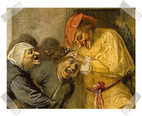 Ci-dessous, un autre tableau, de Pieter Bruegel, met en scène une échoppe spécialisée dans le traitement de la folie.
