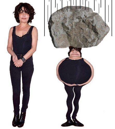 Notre célébrité n'a pas vu venir le bloc qui s'est malencontreusement détaché du front de taille... ! | |
