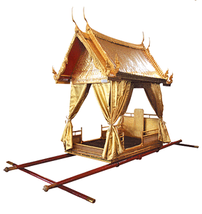 Quelques jours après, alors qu'il flânait dans la rue principale de la bourgade, le tailleur vit la foule s'écarter pour laisser passer un cortège. C'était le préfet en tournée d'inspection, confortablement installé dans un palanquin doré, entouré de ses laquais et de ses gardes rutilants. L'homme des montagnes, tout ébahi, resta au milieu du passage à contempler le spectacle, obligeant ainsi la procession à s'arrêter. Les gardes se ruèrent sur lui et présentèrent au mandarin le fâcheux qui avait eu l'outrecuidance d'arrêter son palanquin. Le dignitaire, furibond, le condamna à recevoir cent coups de bâton et à payer cent taels d'argent. On n'outrage pas impunément le représentant du Fils du Ciel ! Notre tailleur de pierre regretta de ne pas avoir souhaité plutôt être le préfet... et il se retrouva aussitôt dans le palanquin doré !