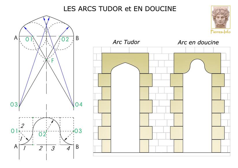 COOKIESCODE Généralement non appareillé, les arcs Tudor et en doucine, sont réservés au baies de faible portée car leur élancement central fragilise le linteau. Un arc de décharge est indispensable pour ce type d'arc.