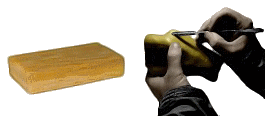 La Cire à Sculpter, plus dure, elle peu être sculptée au couteau ou au ciseau. Ce type de cire permet de travailler par soustraction de matière.