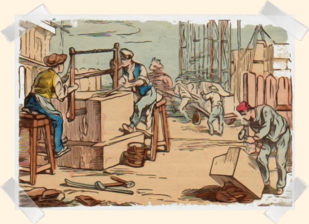 LA PIERRE par Adrien Linden | On élevait un mur à l'extrémité du verger. Ernest et Alice profitaient de l'occasion pour construire de leur côté un superbe château fort avec du sable et des débris de moellons.