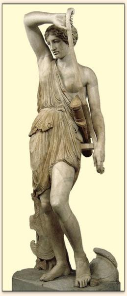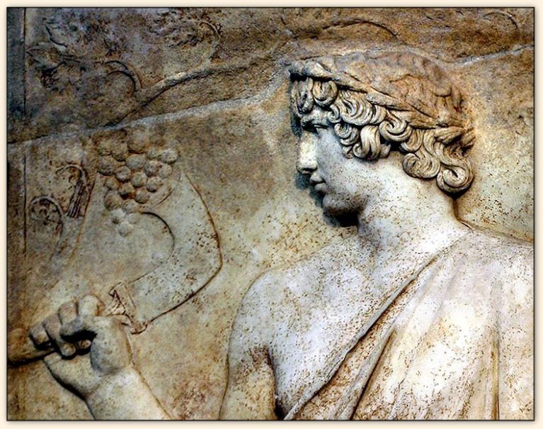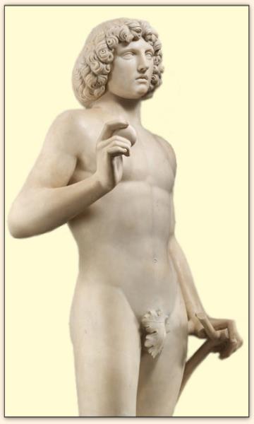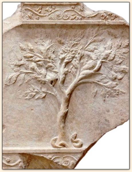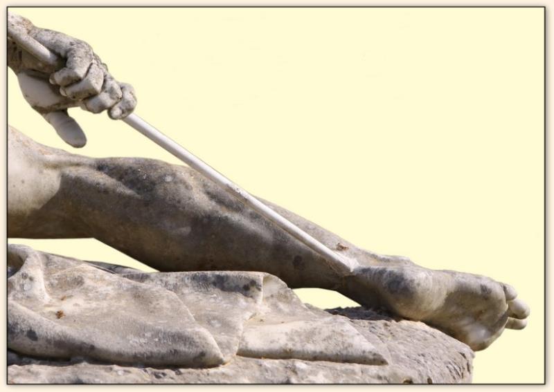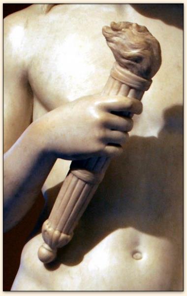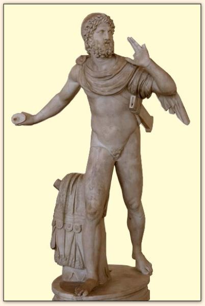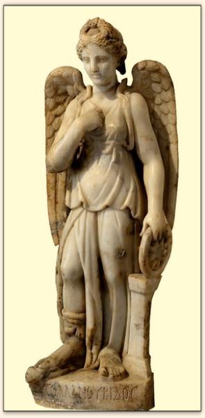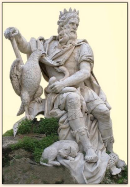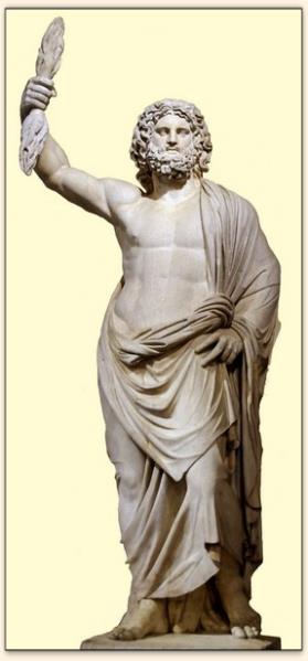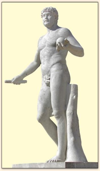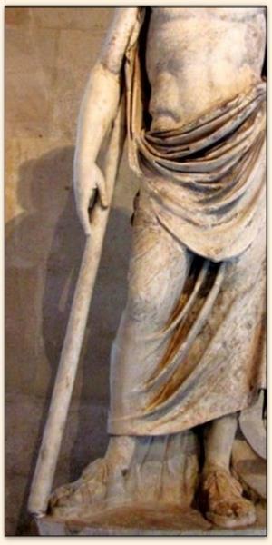 Selon la mythologie grecque, une pierre sacrée appelée l'Omphalos, a été lâchée sur terre par Zeus. Elle marque son centre matériel et spirituel, "le nombril du monde". |