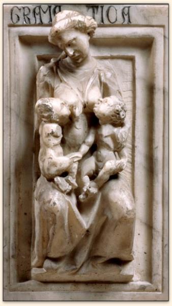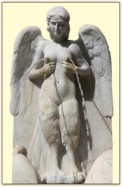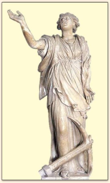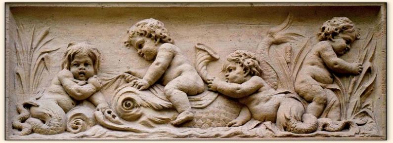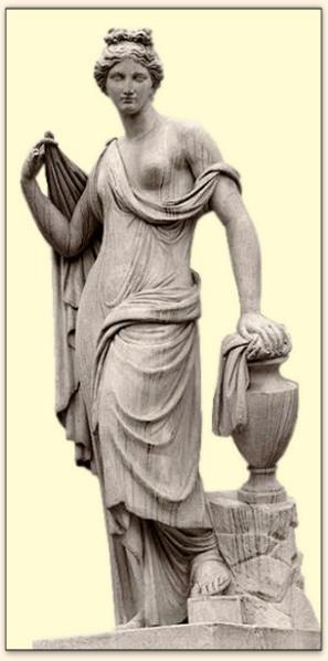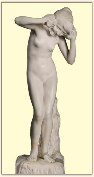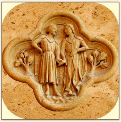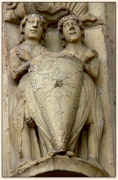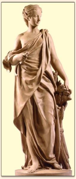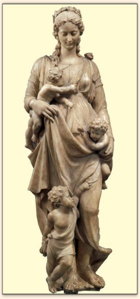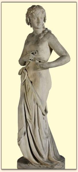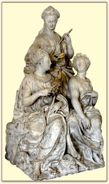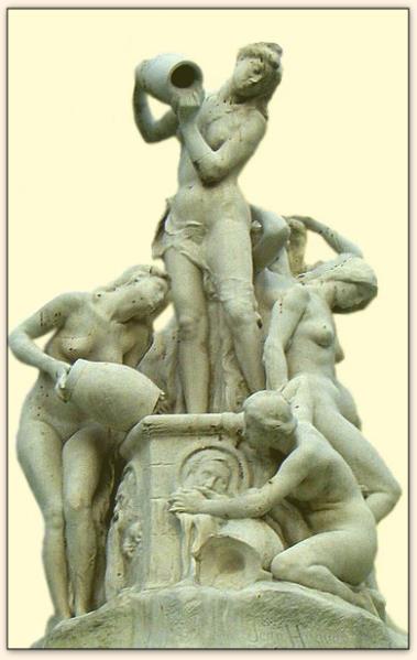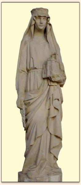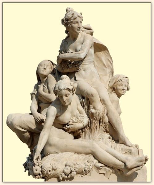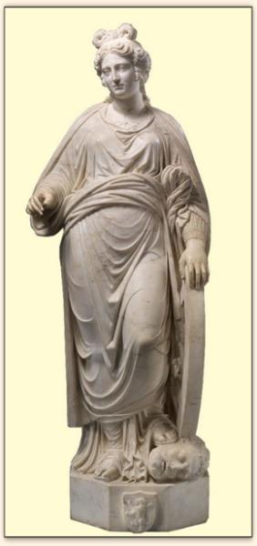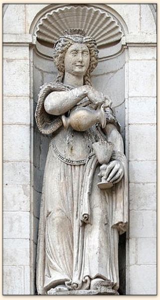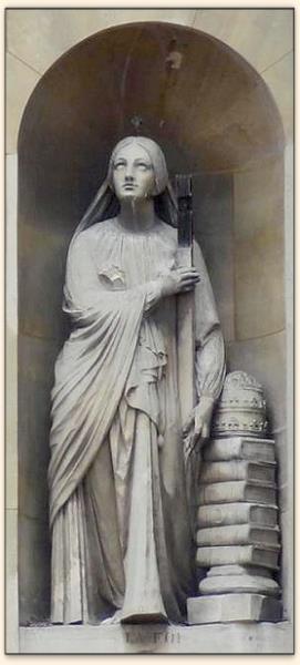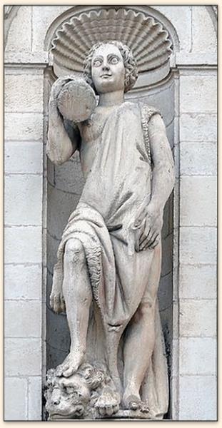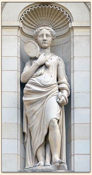 Les Cariatides apparaissent tout d'abord sur les édifices grecs d'ordre ionique et sont ensuite répétées dans l'antiquité gréco-romaine, sous la Renaissance et au XIXème siècle. A ce moment, par leurs attributs, elles peuvent avoir de nombreuses significations en symbolisant la justice, la force, la tempérance, la prudence... |