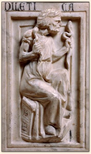 Ces serpents peuvent encore représenter la pensée non positive, l'exaltation imaginative, les principes des dérèglements nuisibles. Ils crachent parfois leur venin dans la coupe pour permettre de recueillir le poison et pour le transformer en médecine. |