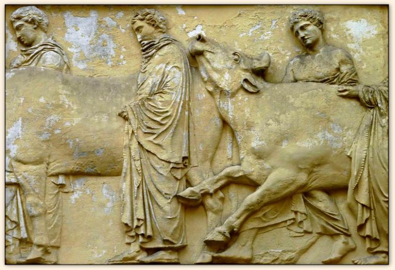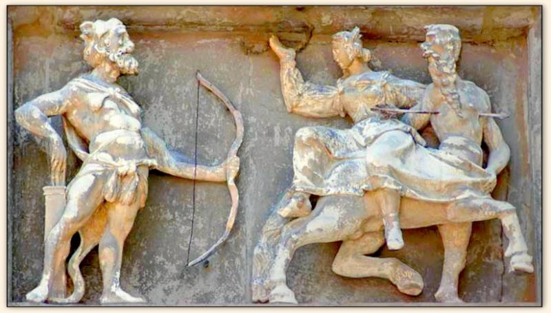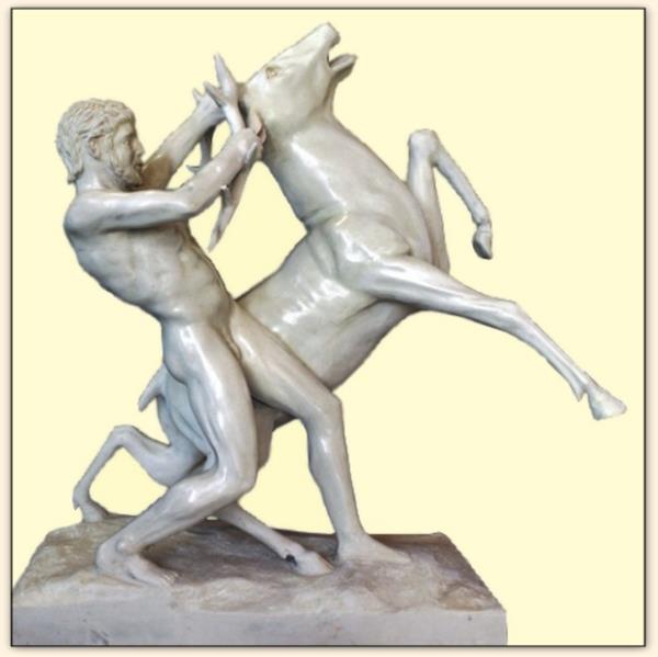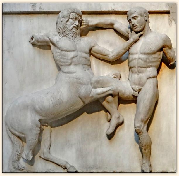 Pour les Grecs de l'antiquité, les centaures symbolisent la luxure et l'ivresse. Il participe à plusieurs scènes mythologiques : le combat contre les Lapithes - L'agression d'Atalante - Le combat contre Héraclès - La mort de Chiron.