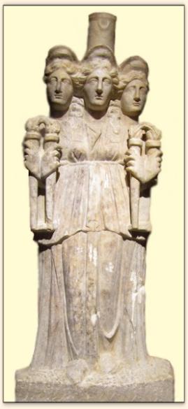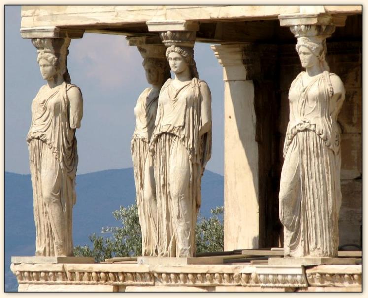 Elles représentent de jeunes prêtresses ou bien les canéphores, ces jeunes filles de famille noble parées des plus riches ornements. Elles portent sur leur tête des corbeilles contenant les offrandes nécessaires aux sacrifices dans les cérémonies sacrées.