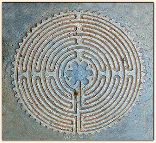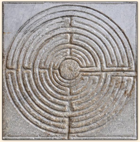 Dans le labyrinthe, le centre représente la fin d'un parcours de pénitence, l'aboutissement d'un pèlerinage, ou encore celui de l'initiation. Au centre même du labyrinthe se trouve la victoire du spirituel sur le matériel, de l'éternel sur le périssable, de l'intelligence sur l'instinct, du savoir sur la violence aveugle.