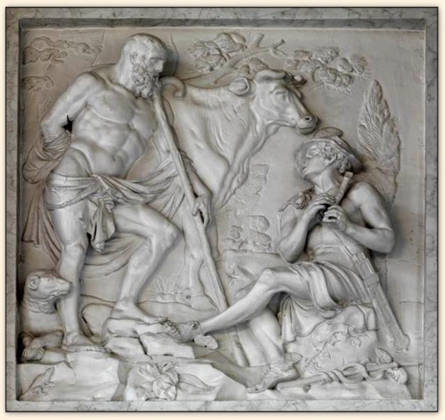 Le caducée est un des attributs du dieu Hermès dans la mythologie grecque. C'est une baguette de laurier ou d'olivier surmontée d'une paire d'ailes et entourée de deux serpents entrelacés.