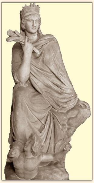 Le symbole le plus fréquemment utilisé pour représenter la Vierge est le visage d'une jeune et belle femme à la longue chevelure. Parfois, en rappel de la déesse Démeter, un épi de blé peut l'accompagner.