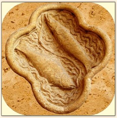 La représentation symbolique du signe des Poissons figure deux courbes verticales opposées dos à dos et reliées au milieu par un trait horizontal.