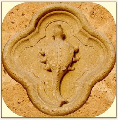 Le symbole le plus fréquemment utilisé pour représenter le Scorpion est l'animal, pinces en avant et dard enroulé sur le côté ou tendu, prêt à piquer. Notre modèle montre celui de la cathédrale d'Amiens. L'animal est ici une sorte d'hybride imaginaire, moitié dragon, moitié lézard.