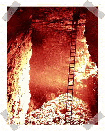 On a alors une sensation jamais éprouvée dans un puits de carrière ordinaire, celle d'être absolument perdu dans l'espace au dessus d'un abîme éclatante de lumière, où on y observe des hommes en mouvement à trois cents pieds (~ 91 m) dessous. En attendant, le véhicule glisse en courbe sur le guide-câble, et, en quelques minutes, on est au fond, entourée par des ouvriers prêt à charger l'ardoises devant être être remontées par le même itinéraire.